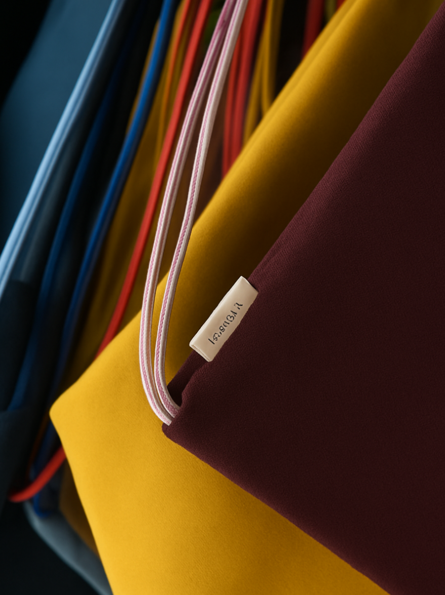 A simple gym bag made from water-repellent organic cotton (triple twisted Panama fabric) woven and dyed in Germany.